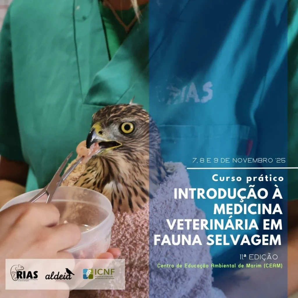 Nos próximos dias 7, 8 e 9 de novembro decorre mais uma edição do Curso Prático: Introdução à Medicina Veterinária em Fauna Selvagem, no CEAM (Centro de Educação Ambiental de Marim).