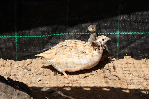 Há cerca de uma semana, ingressou uma outra cria, desta vez de perdiz (Alectoris rufa). Tal como aconteceu com os patos, esta pequena ave não apresentava lesões físicas, precisando apenas de crescer e aprender a ser autónoma. E também esta está com uma mãe adoptiva. Foi adoptada por uma codorniz, que lhe dá abrigo debaixo das suas asas, e que a acompanha na hora da alimentação.