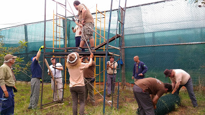 Cerca de 10 escuteiros adultos ajudaram o RIAS na colocação de rede no tecto de um túnel de voo que estava inutilizado. Tiveram ainda tempo para colocar rede de sombra na respectiva câmara de forma a isolar visualmente o interior da mesma.