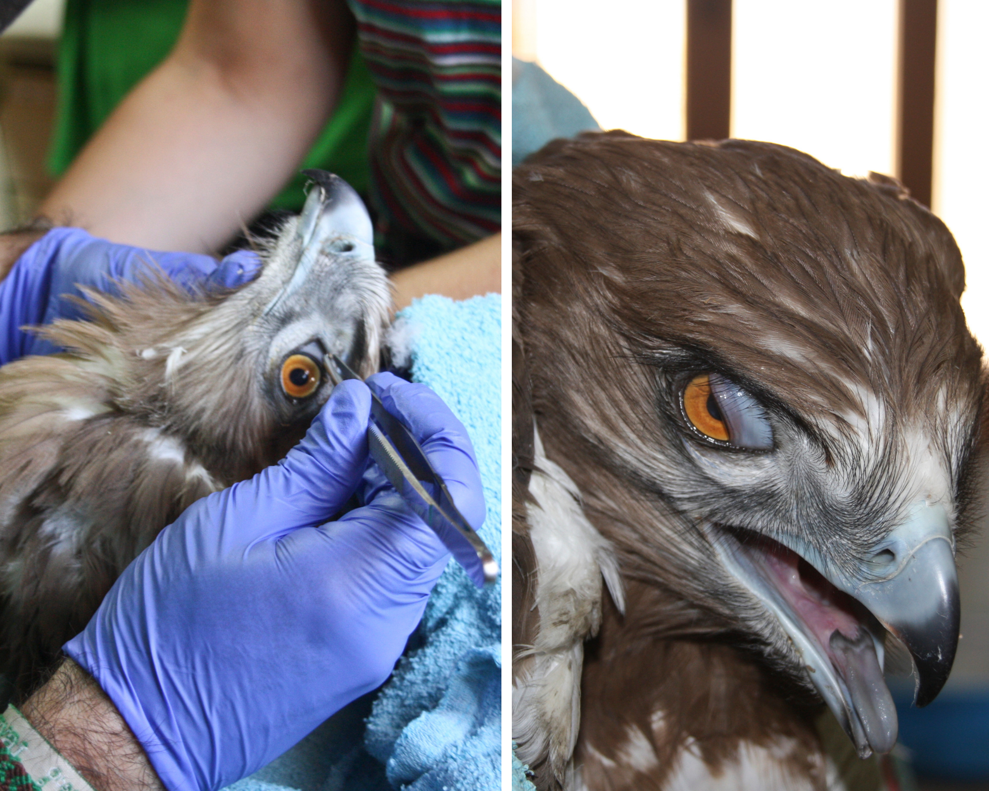 No momento em que a águia-cobreira (Circaetus gallicus) na imagem ingressou no RIAS, apresentava múltiplos ferrões de abelha distribuídos pela cabeça e pescoço. Apresentava ainda inflamação das pálpebras como consequência de uma reação a estas picadas.