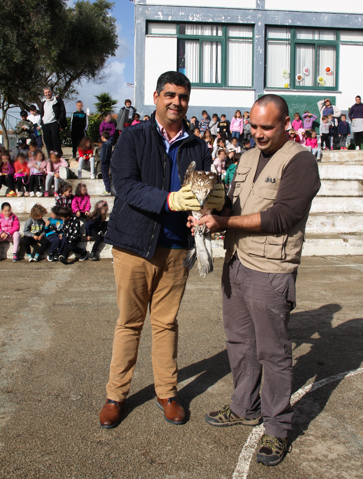 Juntamente com todas as crianças da EB1/JI de Alvor, devolvemos à Natureza uma águia-cobreira (Circaetus gallicus), relativamente fácil de identificar quando se encontra a voar, pela cor branca na parte inferior das asas.