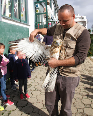 Aproveitámos ainda para explicar aos mais novos o que devem fazer quando encontram um animal ferido. Agarrá-lo? Fazer-lhe festinhas? Não. O melhor é ligar para o SEPNA/GNR ou para o ICNF. Estes poderão fazer a recolha do animal, e trazê-lo até nós.