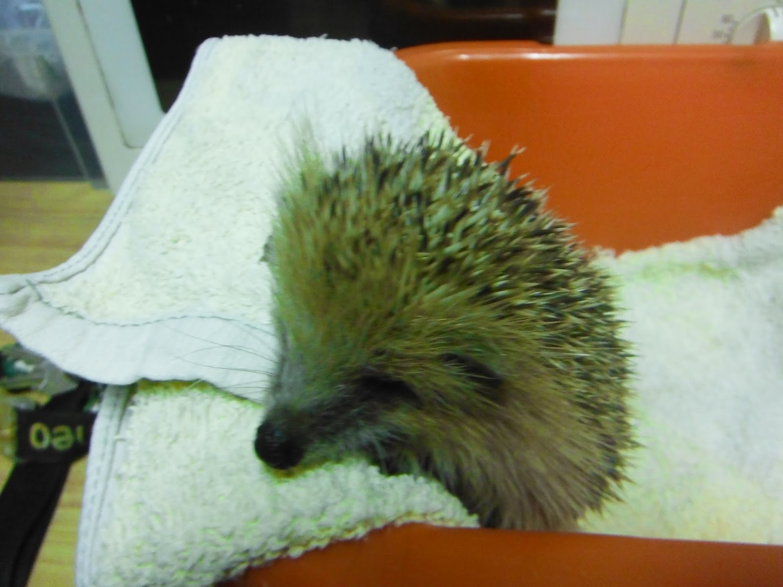 Cria de ouriço a ser alimentado com seringa: