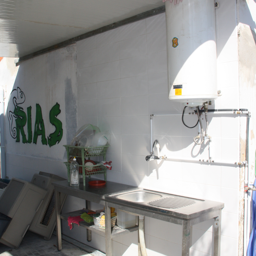 | Zona de lavagens já existente, agora com azulejo no chão e parede, e sistema de saneamento apropriado. |