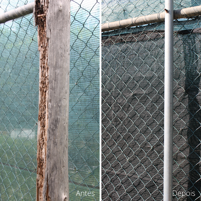 Substituição de postes de madeira em avançado estado de degradação por postes de metal.
