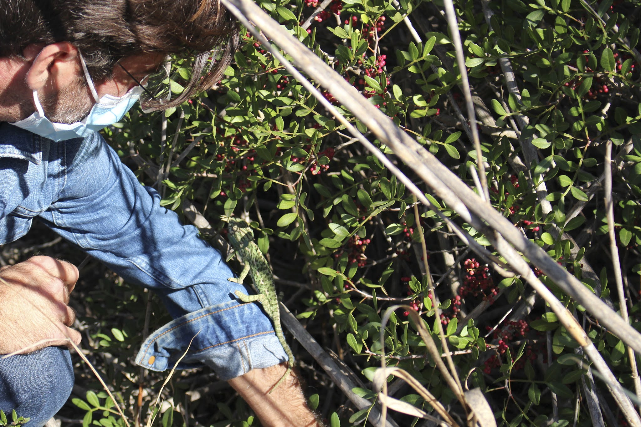 Relembramos que o camaleão-comum é uma espécie cujo habitat natural inclui pinhais e dunas costeiras, mas também pomares tradicionais, e em Portugal esta espécie existe apenas pelo Algarve.