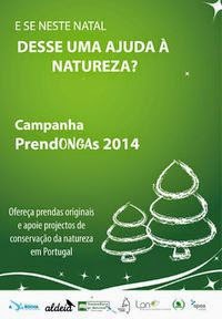 A Rocha, a ALDEIA, a ATN – Associação Transumância e Natureza, o Grupo Lobo, a LPN – Liga para a Protecção da Natureza, a Quercus e a SPEA – Sociedade Portuguesa para o Estudo das Aves apresentam-lhe a Campanha das PrendONGAs para o Natal de 2014, que compila um conjunto de possibilidades de presentes relacionados com a conservação da Natureza e da Biodiversidade.