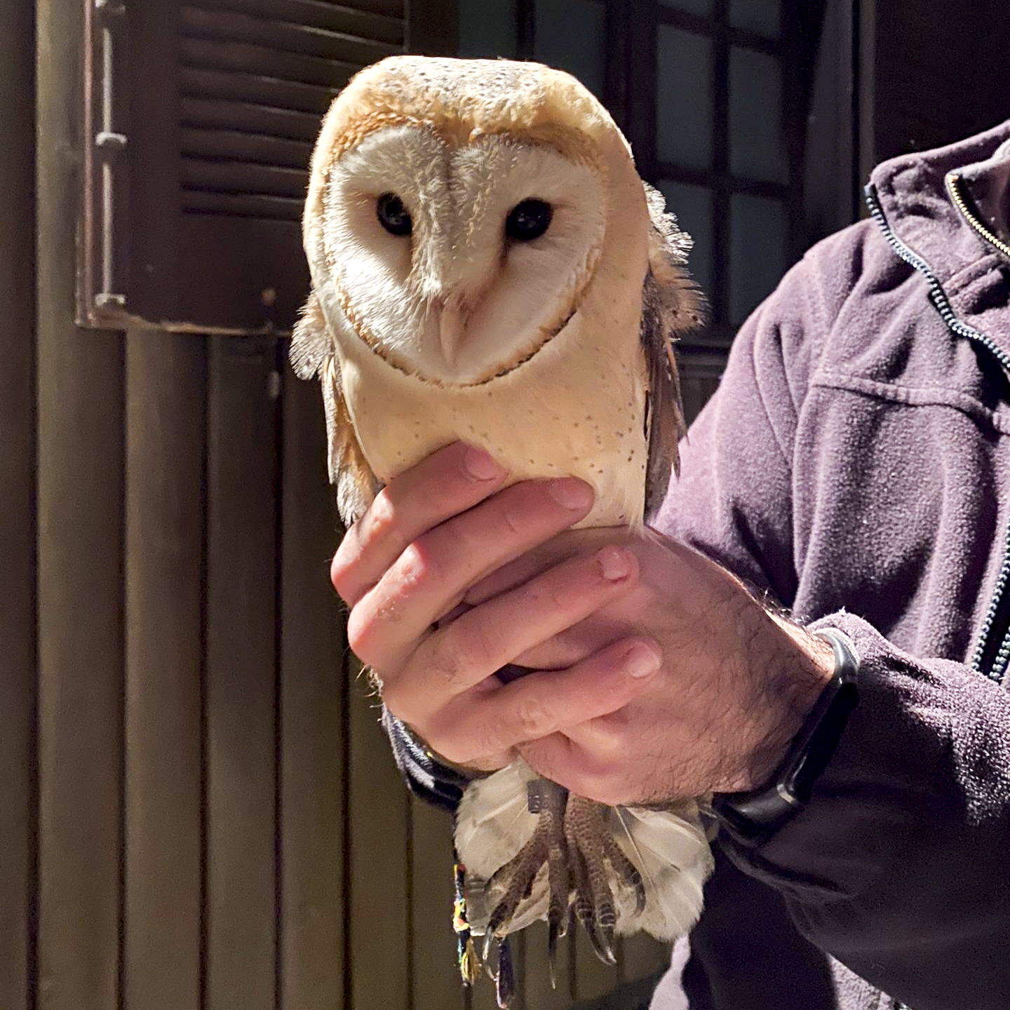 Esta coruja-das-torres (Tyto alba) foi transportada até ao RIAS após ter sido encontrada com dificuldade em voar.