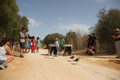 No passado dia 13 de Outubro foram devolvidas à Natureza 11 gaivotas-d’asa-escura e 11 gaivotas-de-patas-amarelas na Quinta de Marim, Olhão. Estas aves, quase na sua totalidade, ingressaram no RIAS com sintomas de doença. Esta doença causa paralisia dos membros inferiores e provoca algumas complicações ao nível do sistema digestivo. Após tratamento com fluido-terapia, alimentação regular e adequada e vários treinos de voo, estas aves ficam prontas para serem devolvidas à Natureza.