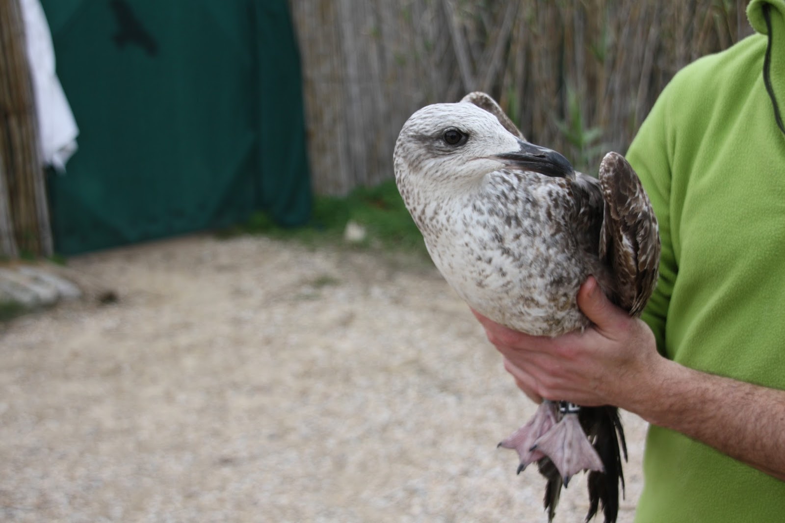 Uma das gaivotas chegou-nos com suspeita de ter sido atingida a tiro. Tinha ferimentos circulares compatíveis com chumbos de caçadeira e uma factura no cúbito. Neste caso, foi necessário imobilizar a asa afectada até que a fractura cicatriza-se.