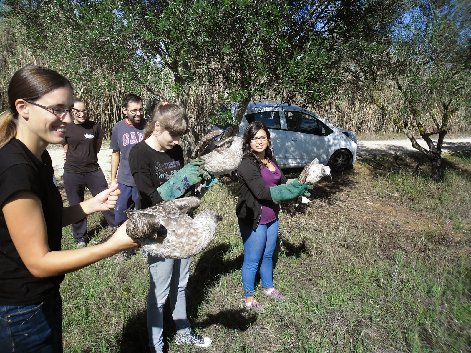 As cinco gaivotas-de-patas-amarelas foram devolvidas à natureza com a ajuda de umas amigas voluntárias do RIAS que as baptizaram de “Cláudia”, “Catarina”, “Thijs”, “Soraia” e “Andrezinho”.