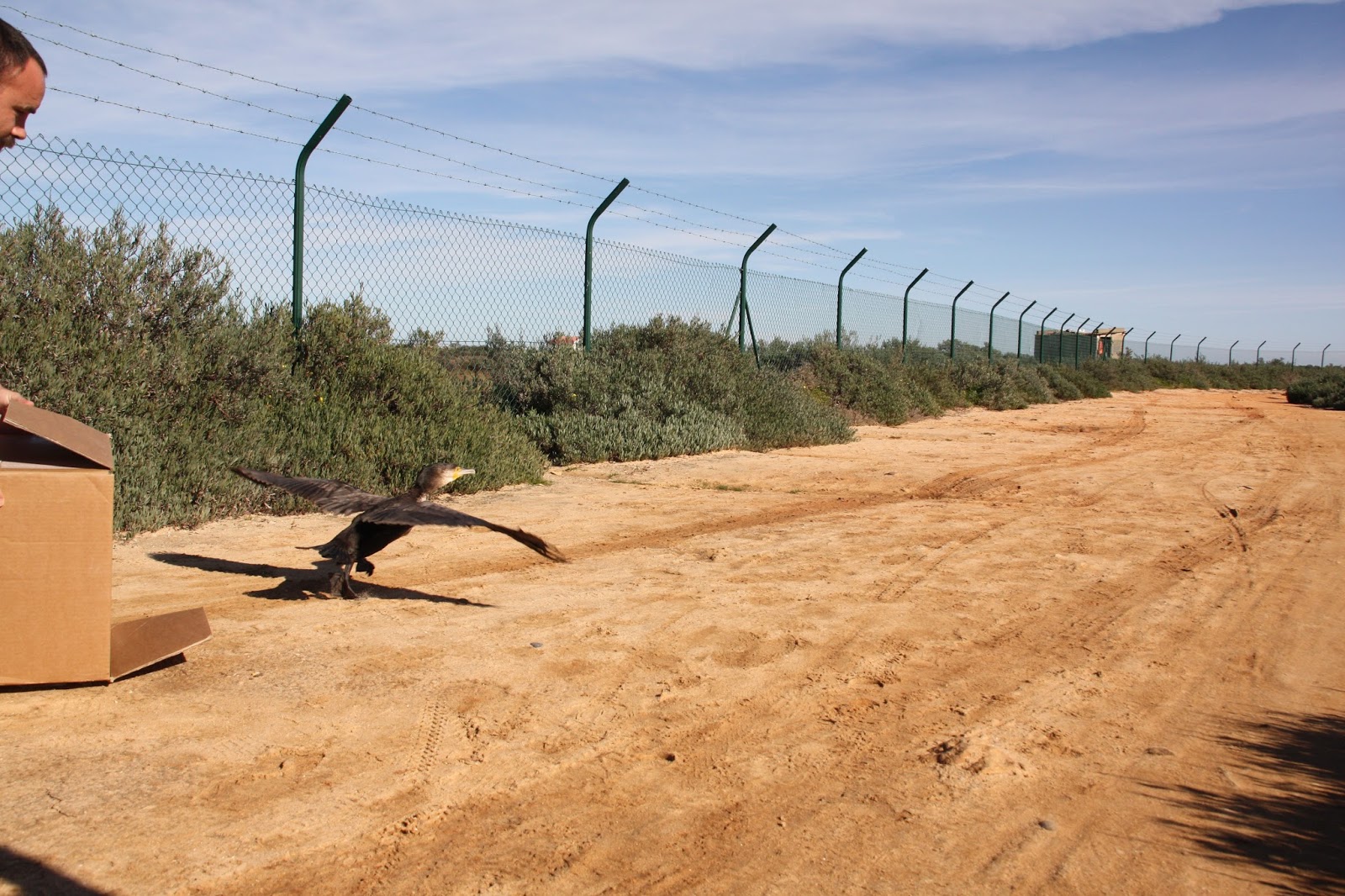 Um corvo-marinho-de-faces-brancas foi encontrado em Olhão. O animal não tinha lesões, mas estava molhado e hipotérmico. Foi necessário secá-lo para fazer subir a temperatura corporal e administrar fluidos.