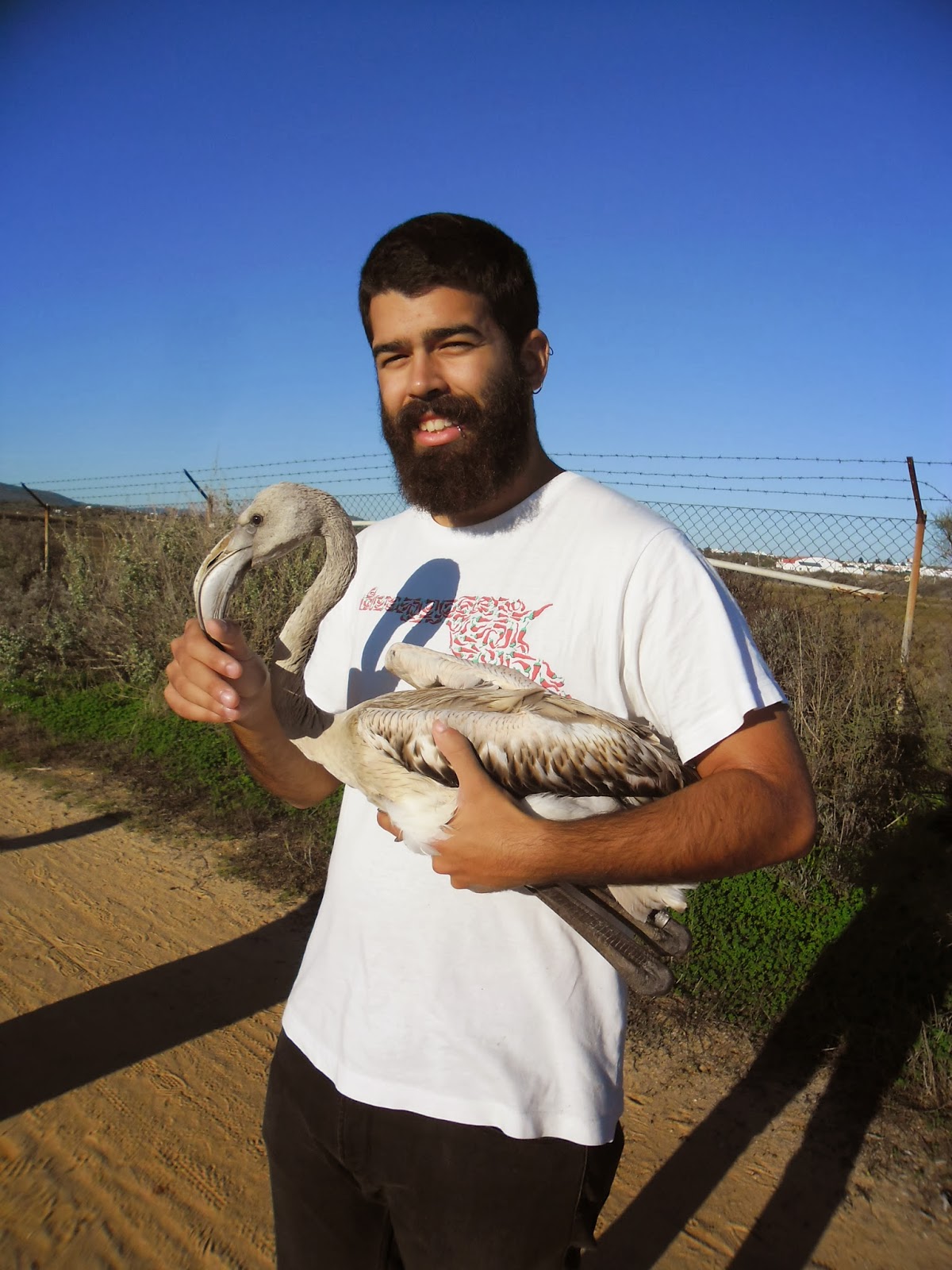 Devolução à Natureza de um flamingo (Phoenicopterus roseus)