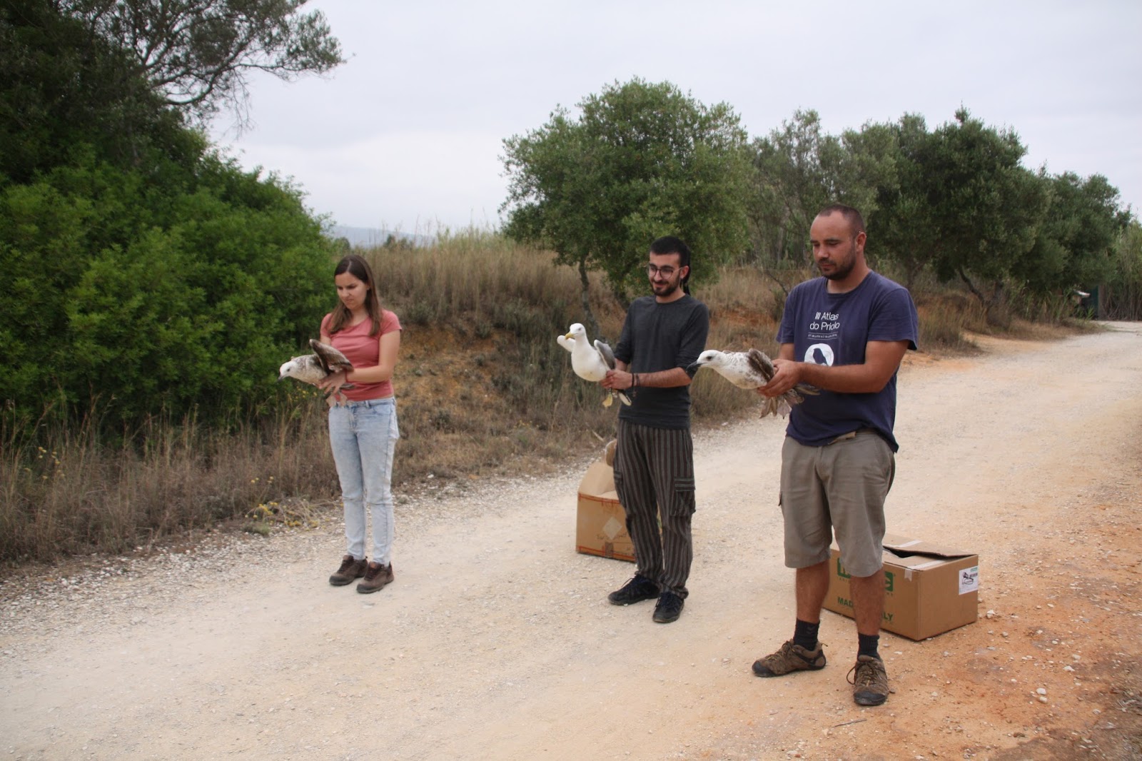 Devolução à Natureza de uma gaivota-d’asa-escura (Larus fuscus) e três gaivotas-de patas-amarelas (Larus michahellis)