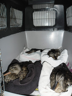 O seu processo de recuperação consistiu em fluidoterapia várias vezes por dia e posteriormente alimentação regular e equilibrada. Mais tarde foram colocados numa instalação exterior com um charco onde puderam treinar o voo e natação.