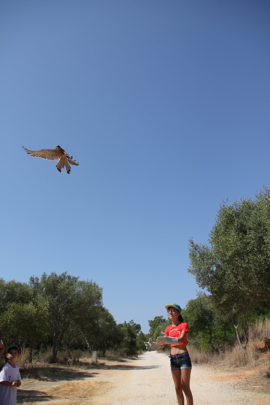 Quando se verificou que o peneireiro estava a caçar e a voar em perfeitas condições, foi devolvido à Natureza na presença de alguns campistas do Parque de Campismo de Olhão.