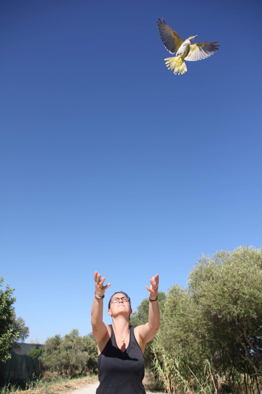 Devolução à Natureza de um papa-figos (Oriolus oriolus), de quatro andorinhas-dos-beirais (Delichon urbicum) e de um camaleão-comum (Chamaeleo chamaeleon)