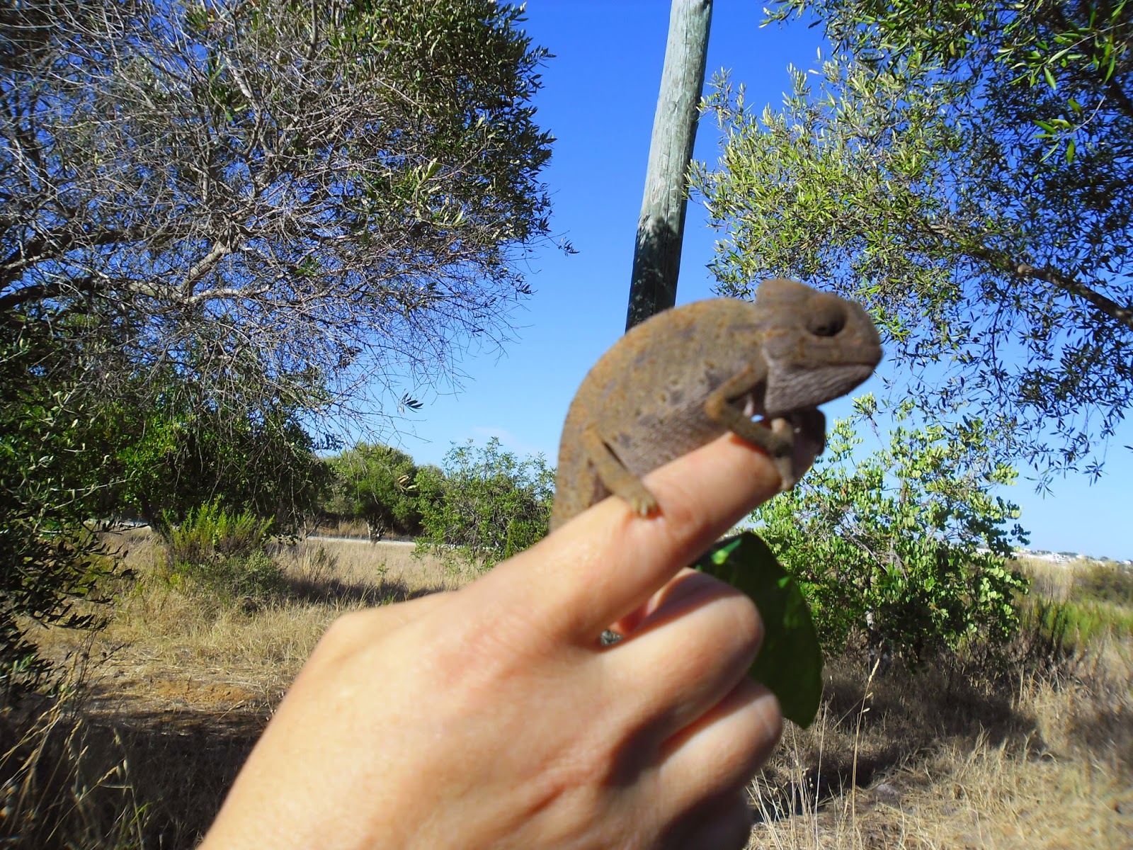Devolução à Natureza de um camaleão (Chamaeleo chamaeleon)