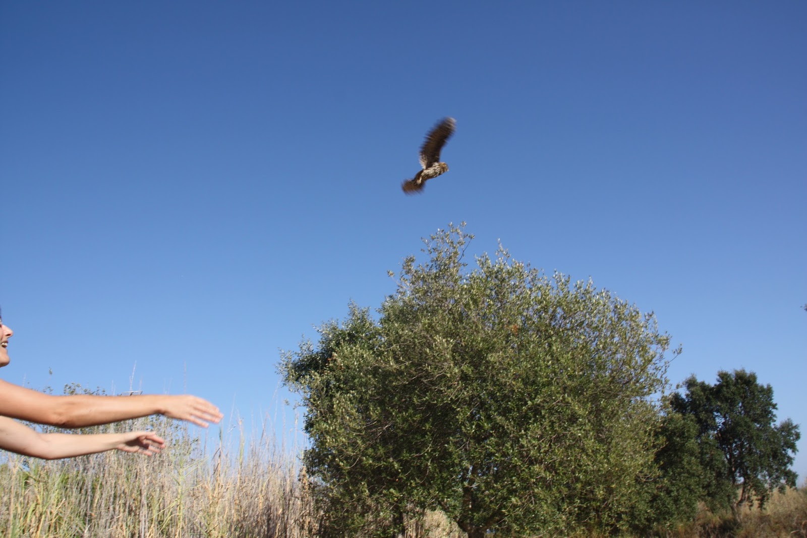 Devolução à Natureza de um mocho-galego (Athene noctua)