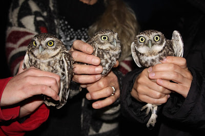 Estes três mocho ingressaram no RIAS em diferentes ocasiões e por diversos motivos. Um deles encontrava-se apenas um pouco debilitado, outro tinha caído do ninho e o terceiro foi atropelado.