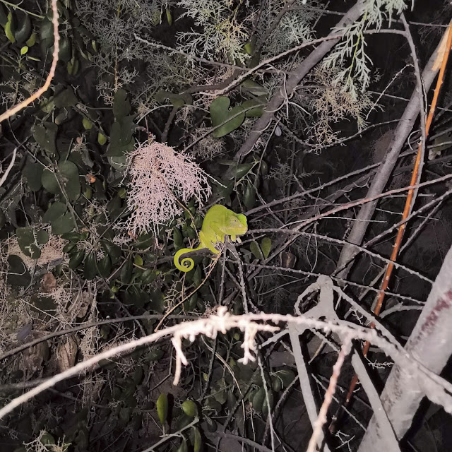 Nas saídas para observar camaleões foi explicada um pouco da biologia e comportamento deste incrível animal e a razão de serem realizadas após o anoitecer – altura em que estão menos ativos e a sua cor sobressai nas folhagens dos arbustos/árvores.