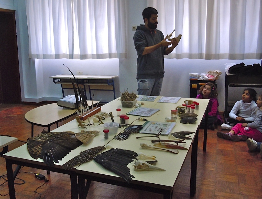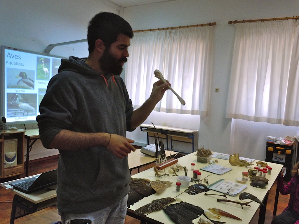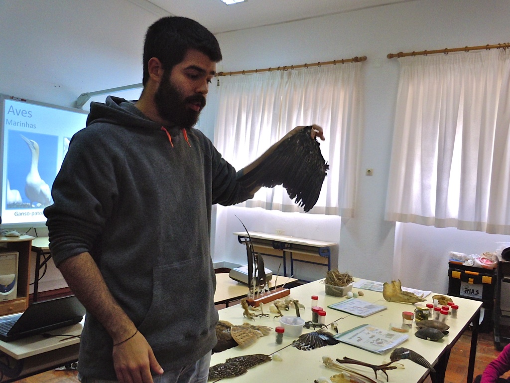Na primeira palestra, mostrou-se como funciona um centro de recuperação de animais selvagens e deu a conhecer um pouco mais sobre os os principais grupos de vertebrados que dão entrada no RIAS. Os participantes puderam também ver de perto material biológico como bicos e asas de aves focando nas adaptações de cada espécie na natureza.