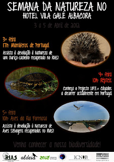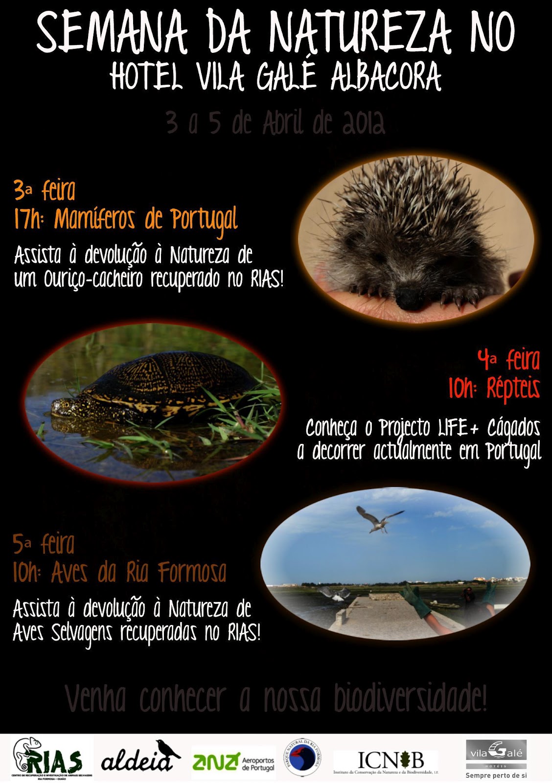 Entre 3 e 5 de Abril, em parceria com o grupo Vila Galé, o RIAS realizou a Semana da Natureza no Hotel Vila Galé Albacora, em Tavira. Ao longo de três dias, turistas e visitantes puderam assistir a três palestras realizadas por técnicos do centro e investigadores do projecto LIFE+Trachemys.
