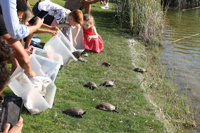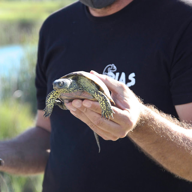 Num dos lagos que existem neste espaço, libertámos também mais de 20 cágados (cágados-de-carapaça-estriada e cágados-mediterrânicos) que ingressaram no RIAS com lesões provocadas por cativeiro ilegal.