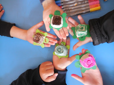 No final tiveram uma pequena actividade prática em que montaram e pintaram um cágado feito com recurso à reutilização de materiais.