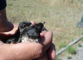 Estas 4 andorinhas-dos-beirais foram encontradas por uma particular na entrada do Centro de Saúde de Silves após terem caído do ninho.