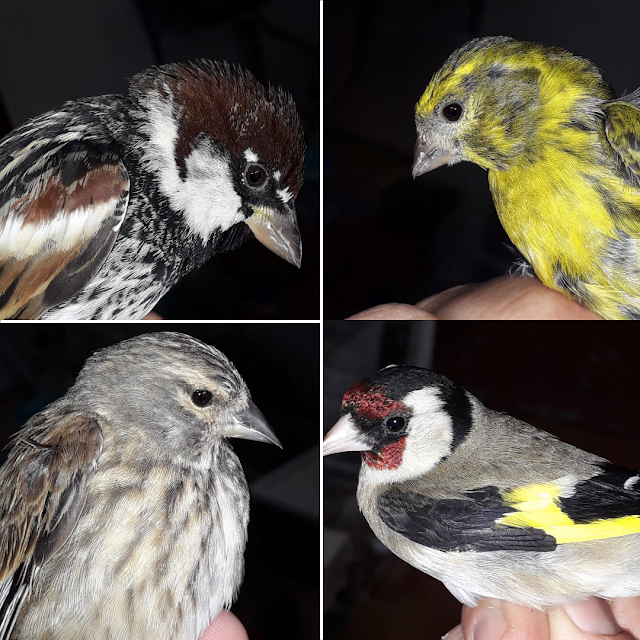 Feito o exame físico a todas as aves e confirmado o seu bem-estar, procedeu-se à anilhagem e transferência para uma instalação de passeriformes, onde, cada uma a seu tempo, voou novamente em liberdade.
