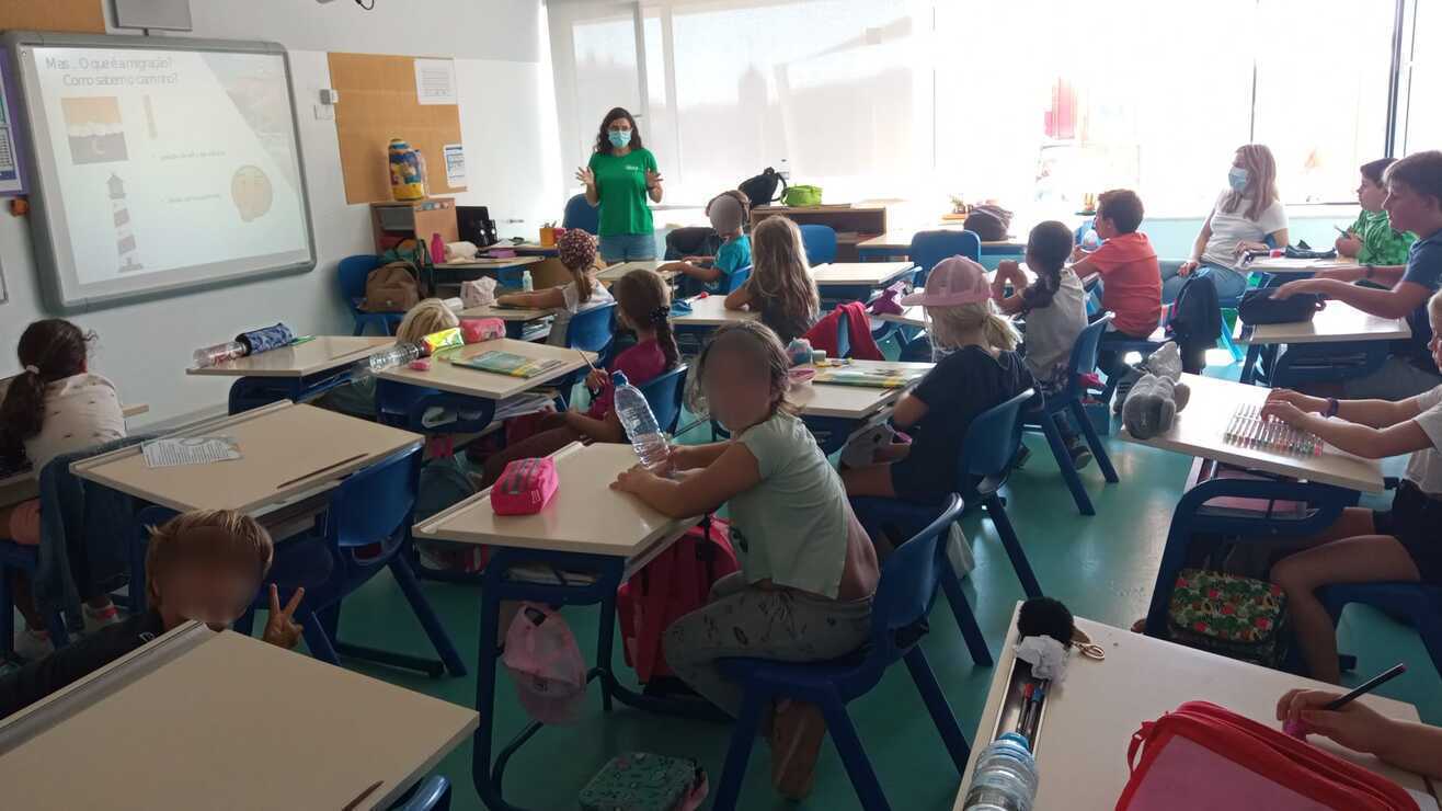 Falámos sobre a migração e algumas das espécies que estavam a passar pela região. Aprenderam porque migram as aves e como sabem o caminho. E que existem espécies – como o chasco-cinzento – que podem voar incríveis distâncias (cerca de 14 000 km) para chegar a África.