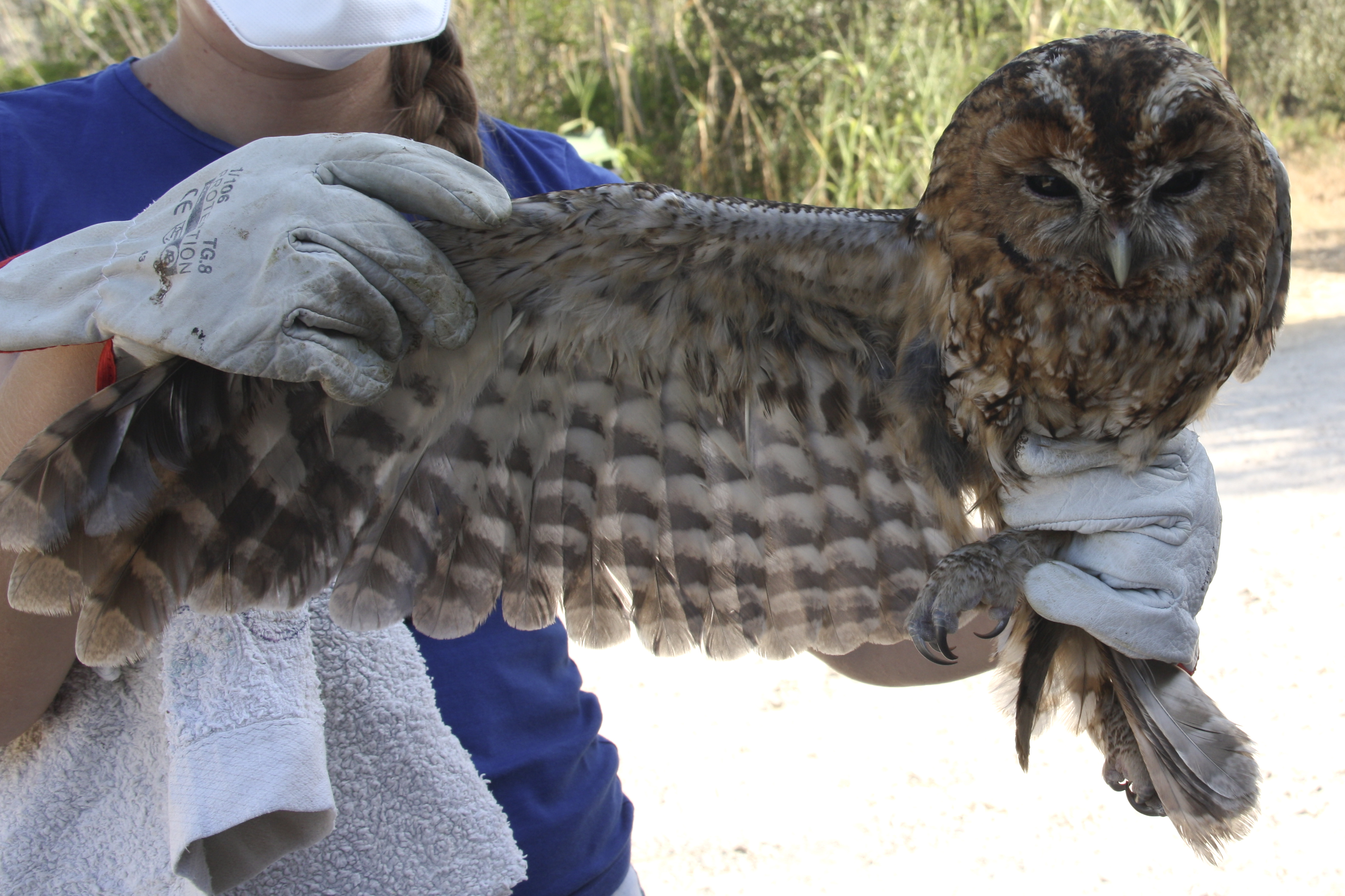 Uma destas aves apresentava algumas penas primárias da asa direita partidas. Não havendo possibilidade de crescerem todas estas penas num curto espaço de tempo, a equipa de reabilitação decidiu realizar uma técnica denominada ‘Imping‘, que consiste na junção da ráquis da pena danificada com uma nova pena da mesma espécie.