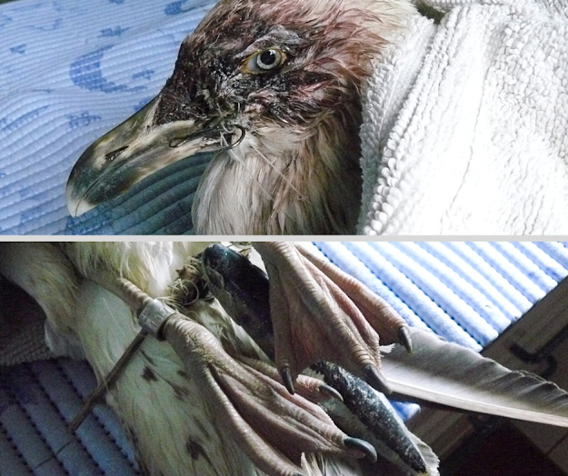 A somar aos ferimentos causados por redes, fios ou anzóis, os animais apresentam sempre debilidade, resultado da incapacidade de movimentação ou alimentação.