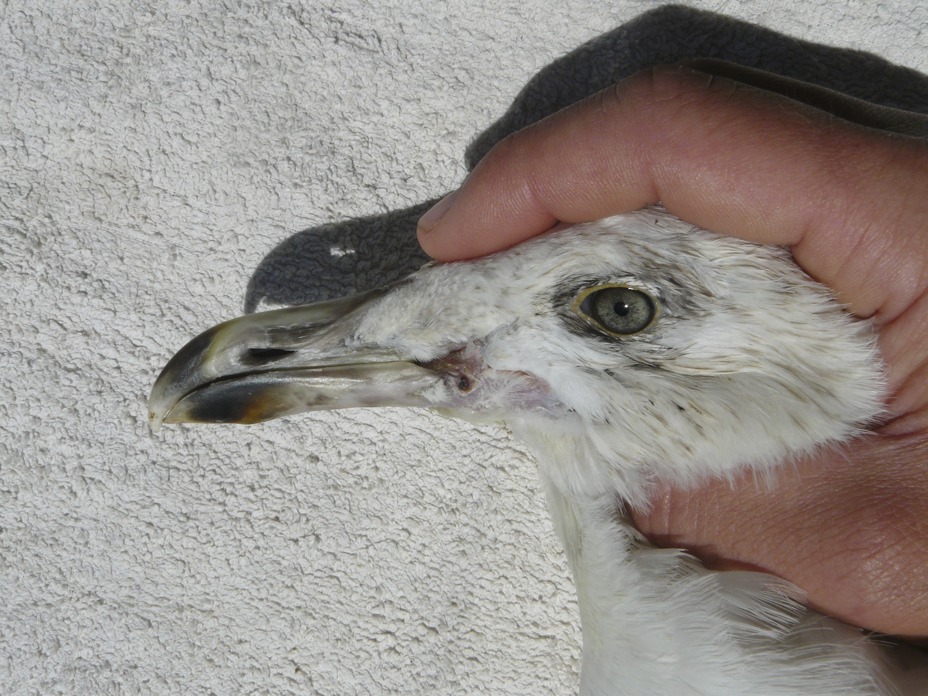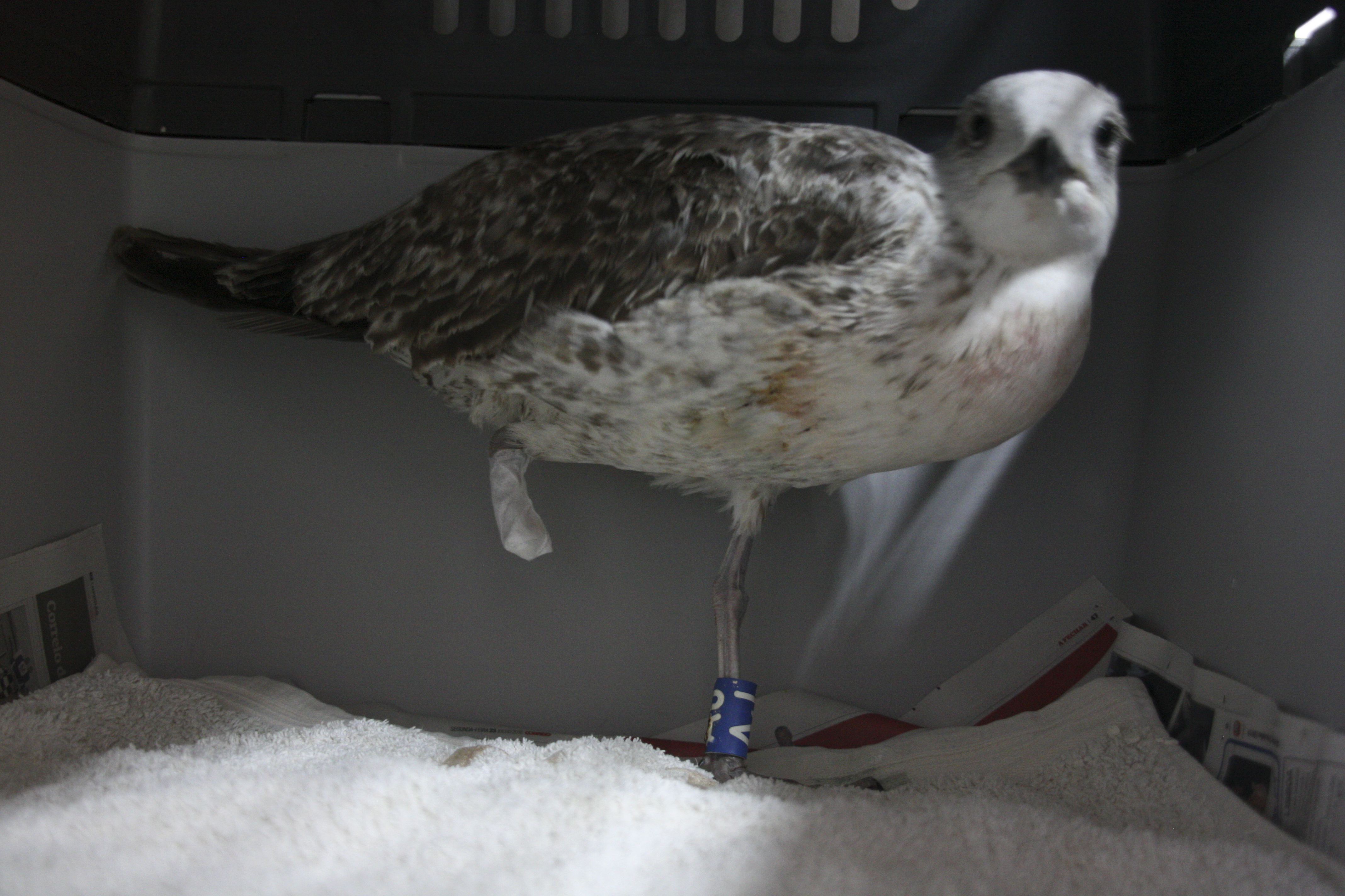 | Gaivota-de-patas-amarelas (Larus michahellis) após cirurgia para amputação de pata. |