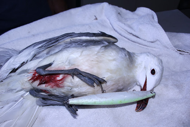 Os anzóis, por sua vez, podem causar lesões internas nos animais, ou infeções graves.
