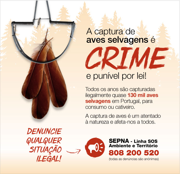 A campanha “Os passarinhos pertencem à Natureza”, contra a captura e combate ilegal de aves, é coordenada pela SPEA – Sociedade Portuguesa para o Estudo das Aves em parceria com a Almargem – Associação de Defesa do Património Cultural e Ambiental do Algarve , a A ROCHA Portugal, a LPN – Liga para a Protecção da Natureza, e a Associação ALDEIA através do RIAS – Centro de Recuperação e Investigação de Animais Selvagens, Olhão, e apela à participação de todos os cidadãos na denúncia destes casos.