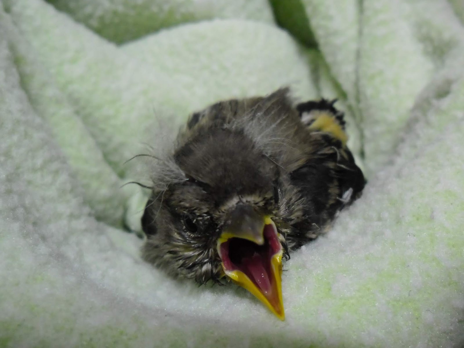| Crias de andorinha-dos-beirais (Delichon urbica). À esquerda, cria mantida em casa na tentativa de tratamento. À direita, cria ingressada no RIAS. |