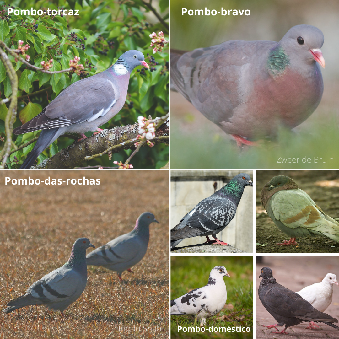 Em Portugal Continental existem três espécies de pombos selvagens: o pombo-bravo / seixa (Columba oenas), o pombo-torcaz (Columba palumbus) e o pombo-das-rochas (Columba livia).