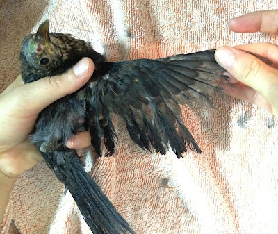 Melro com a pata partida devido à gaiola onde foi mantido