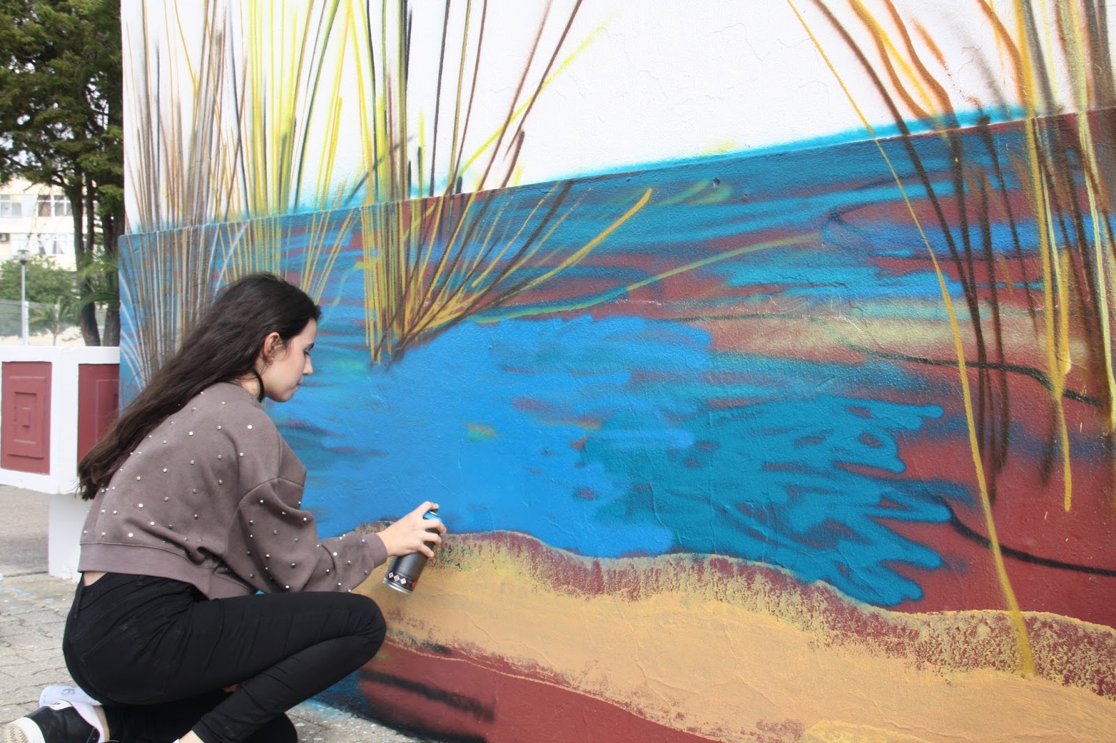 O mural é de grandes dimensões e ainda não está acabado.