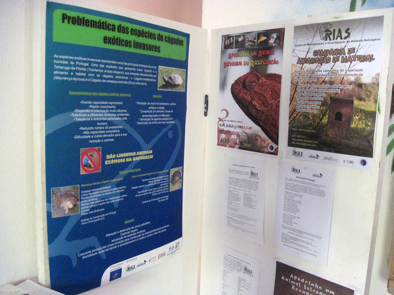 No seguimento do estágio FCT (Formação em Contexto de Trabalho) de uma aluna da Escola Profissional Alsud, Vera Barão, em colaboração com o Projecto LIFE+ Trachemys, foram criados dois cartazes informativos, em exposição no CIA – Centro de Interpretação Ambiental – do RIAS.