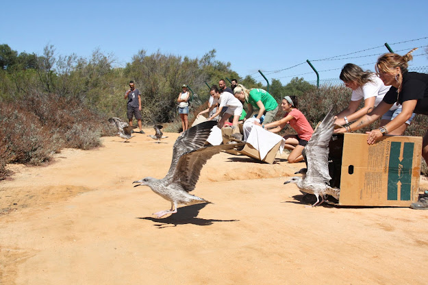 As restantes gaivotas foram devolvidas à Natureza junto aos observatórios para aves da Quinta de Marim:
