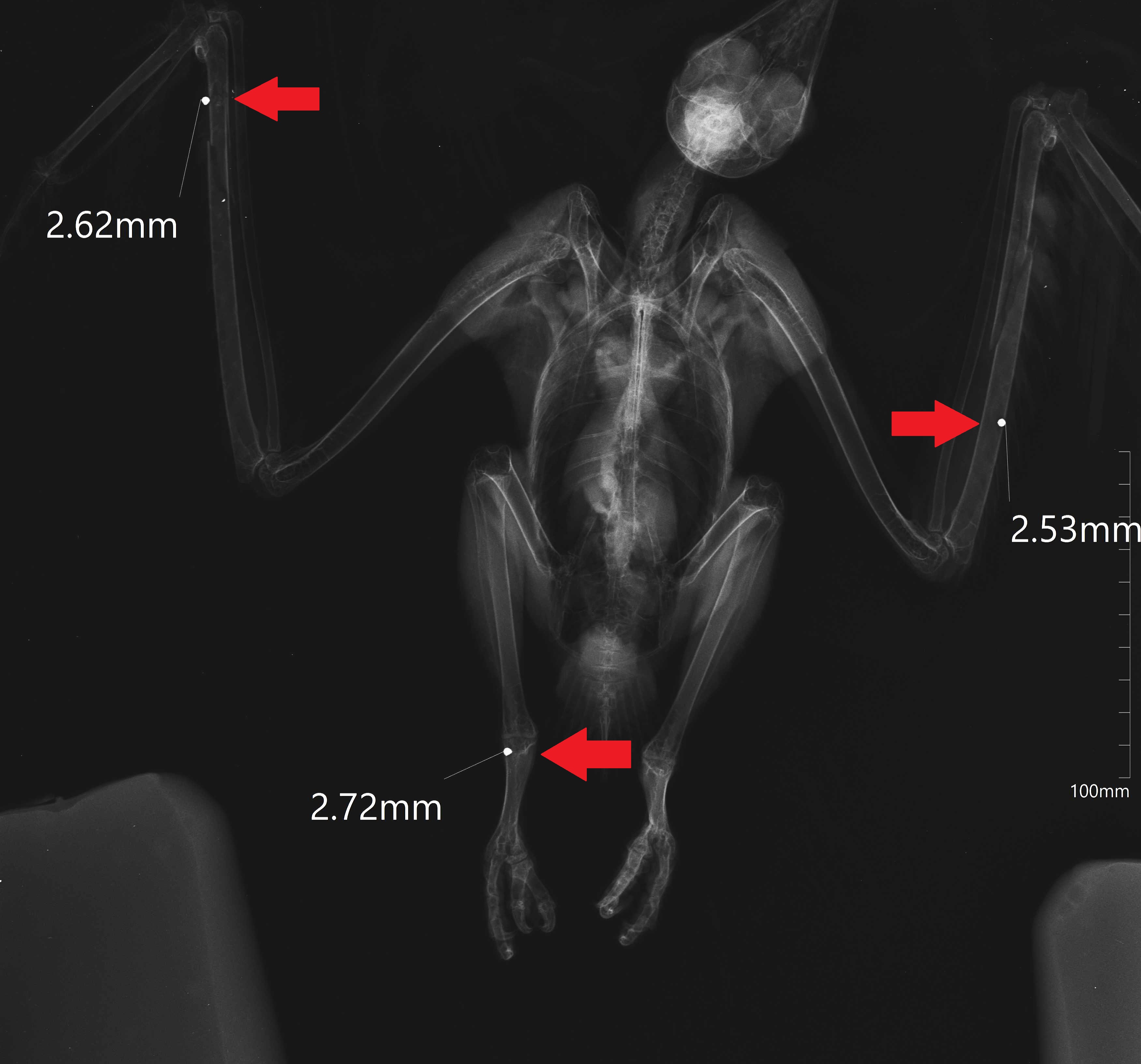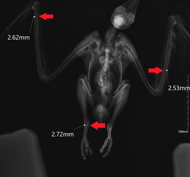 | Raio-x de duas gaivotas, onde é possível observar os chumbos. |