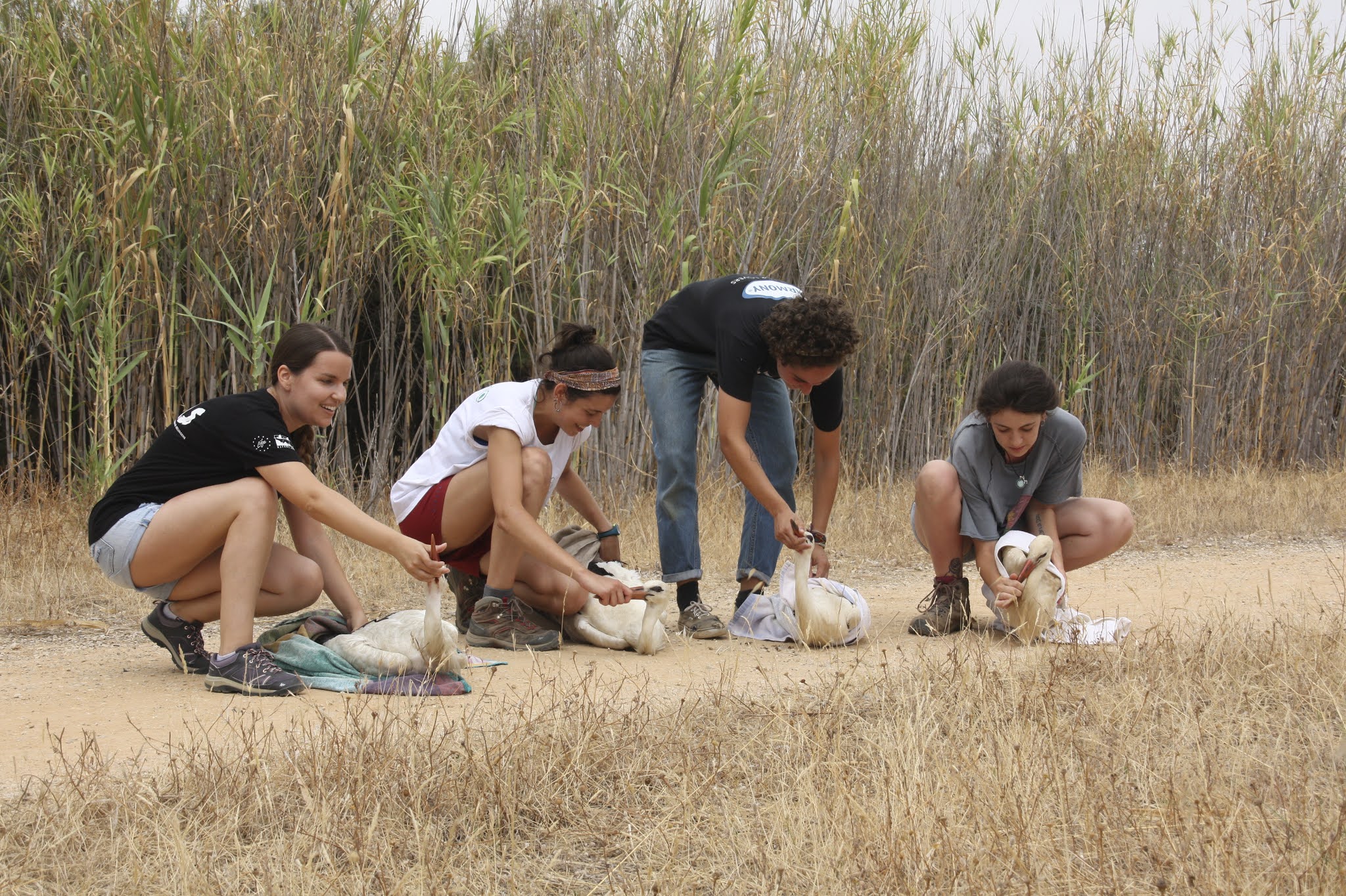 Em baixo, várias colaboradoras e voluntárias do RIAS libertaram quatro cegonhas, das quais três ingressam no centro com sinais de trauma, possivelmente causados pelo embate com alguma estrutura. A quarta cegonha era um indivíduo juvenil que saiu do ninho. Sem certezas do seu bem-estar, a pessoa que o encontrou decidiu que deveria ser transportado até ao nosso centro.