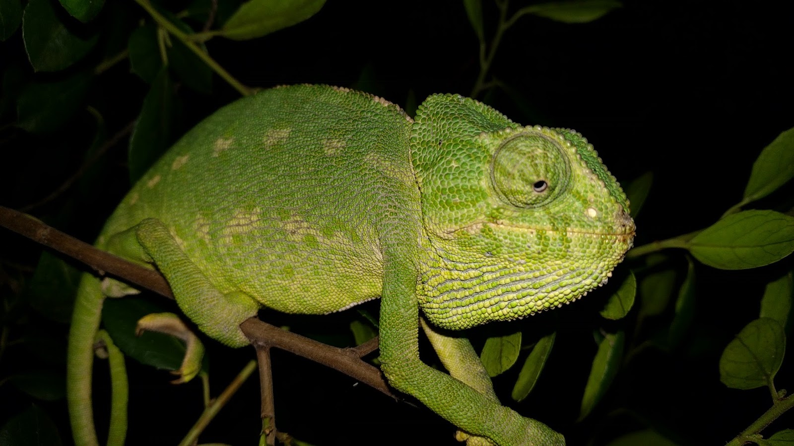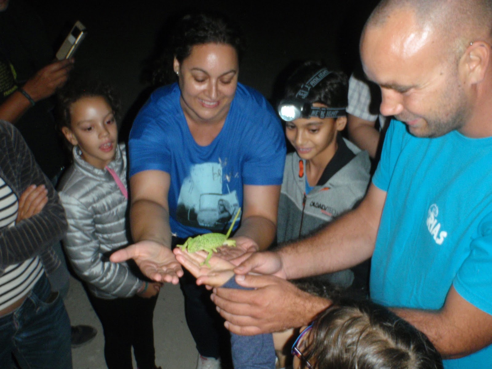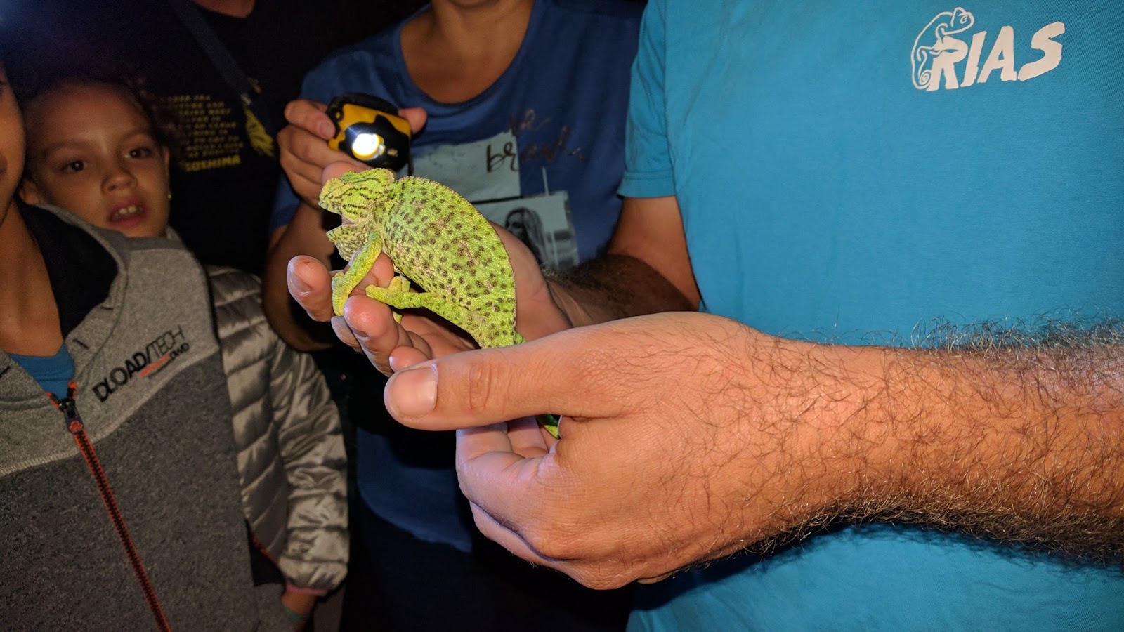 a saída foi realizada durante a noite para observar camaleões. Apesar de estes pequenos répteis não serem nocturnos, é durante a noite que é mais fácil localizá-los.