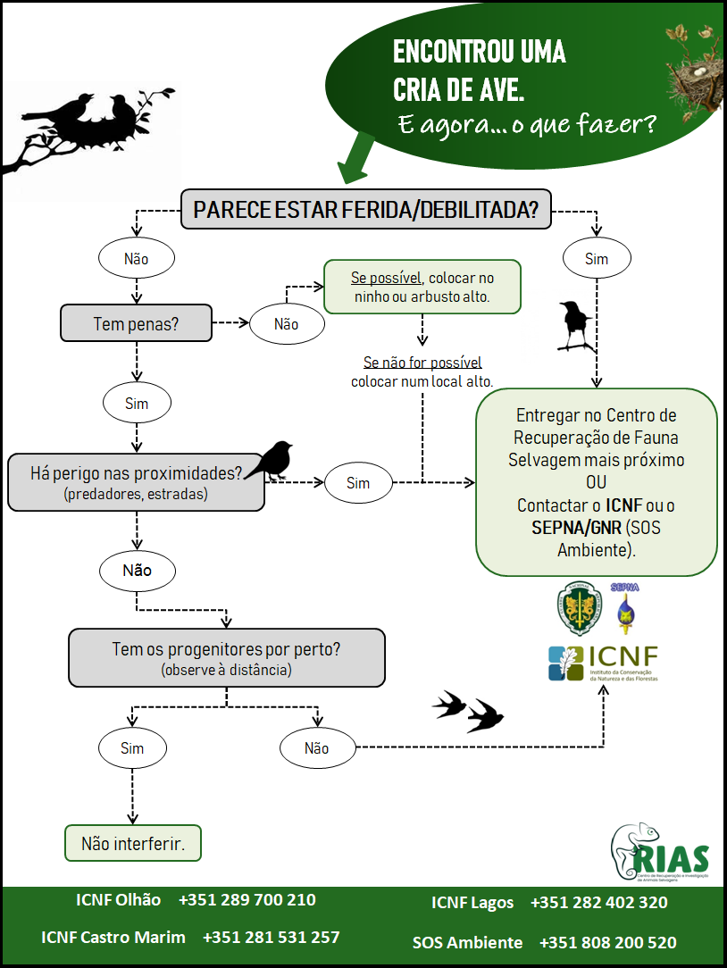 O primeiro factor a ter em conta é o estado de saúde da ave. Caso aparente ter ferimentos ou estar debilitada deverá obviamente ser encaminhada para o centro de recuperação de fauna selvagem mais próximo – Lista Nacional de centros de recuperação para fauna selvagem AQUI.