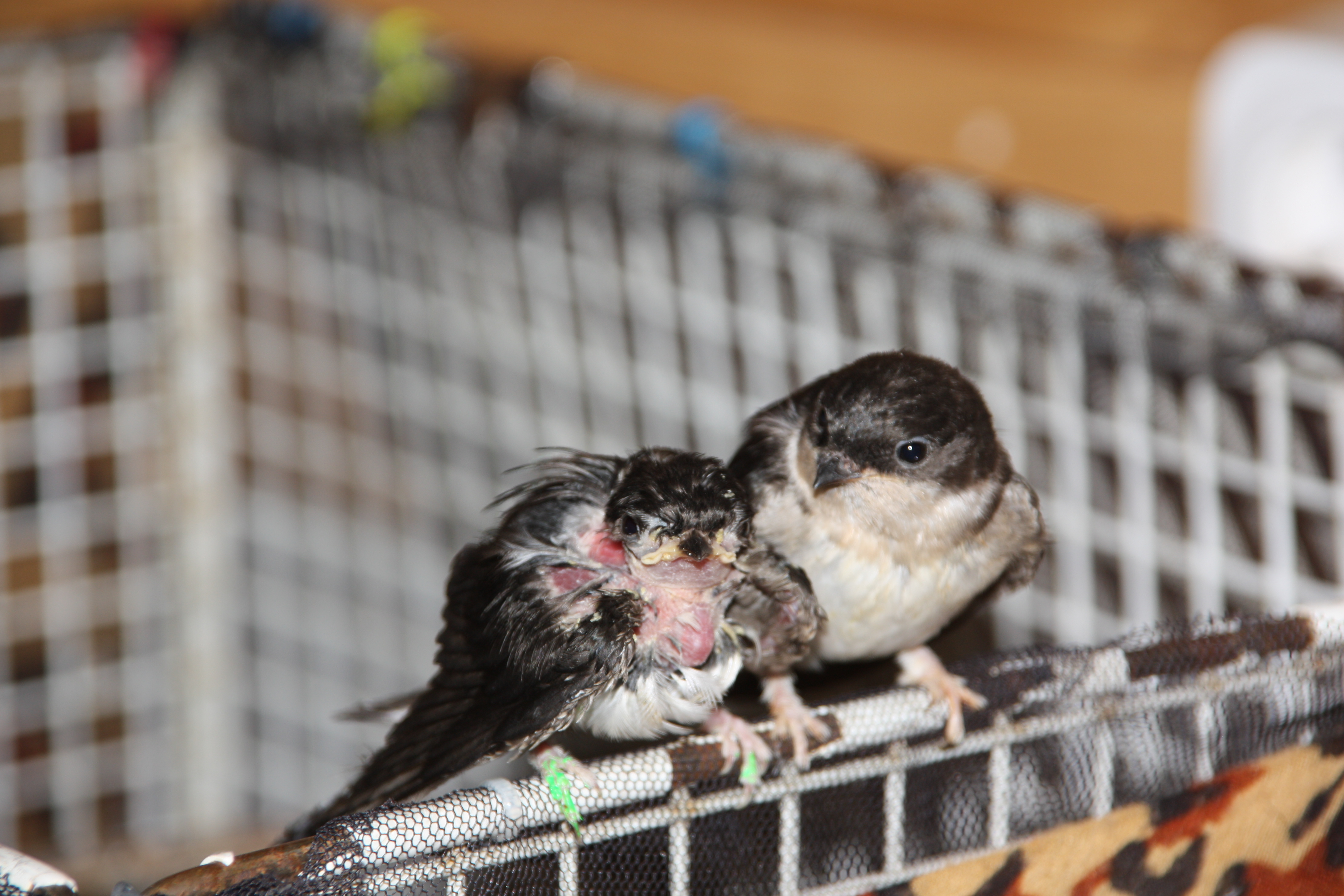 | À esquerda uma andorinha mantida em casa durante vários dias, e à direita uma transportada rapidamente para o RIAS. |