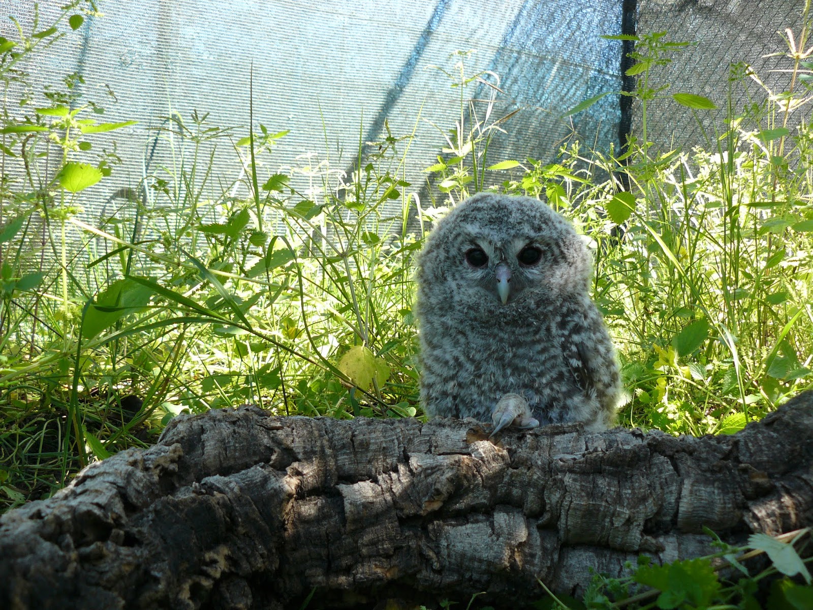 Cria de coruja-do-mato em recuperação em Abril de 2018