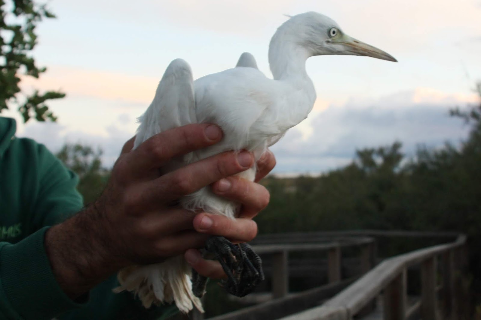| Garça-boieira libertada junto ao moinho de maré da Quinta de Marim. |